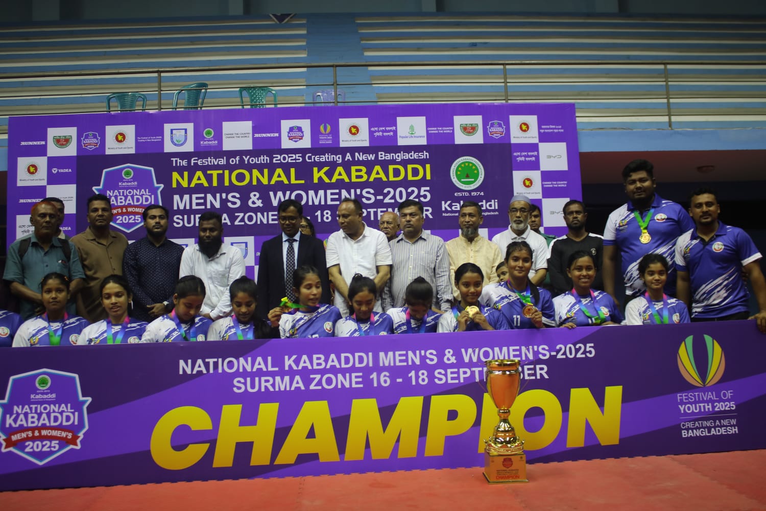 ‘তারুণ্যের উৎসব’ উপলক্ষে আয়োজিত জাতীয় কাবাডি চ্যাম্পিয়নশিপের সুরমা জোনের পুরুষ বিভাগে মৌলভীবাজার এবং নারী বিভাগে ব্রাহ্মণবাড়িয়া চ্যাম্পিয়ন হয়েছে। বৃহস্পতিবার প্রতিযোগিতার শেষ দিনে সিলেট বিভাগীয় ক্রীড়া কমপ্লেক্সে উভয় বিভাগের সেমিফাইনাল ও ফাইনাল খেলা অনুষ্ঠিত হয়।
